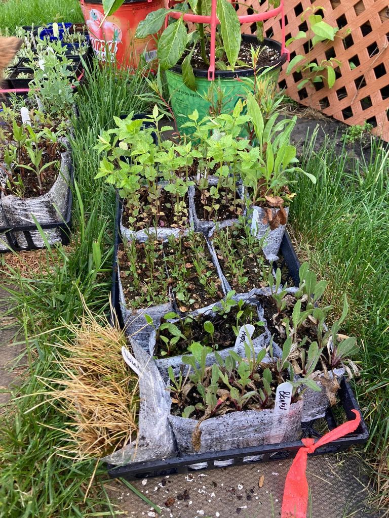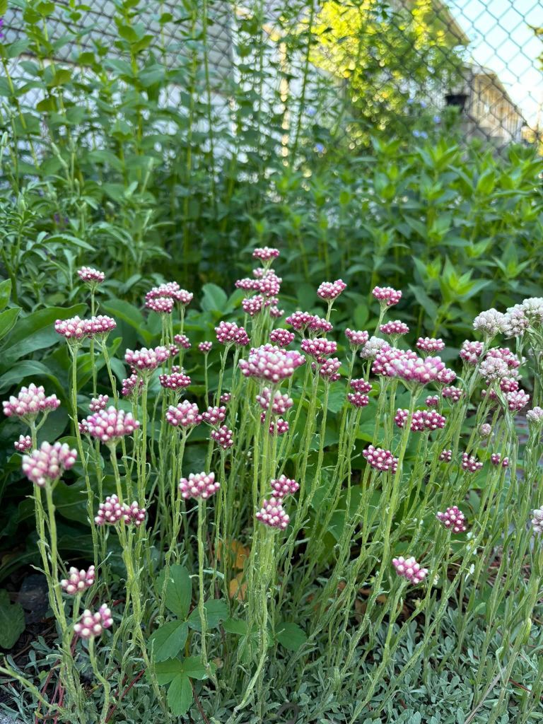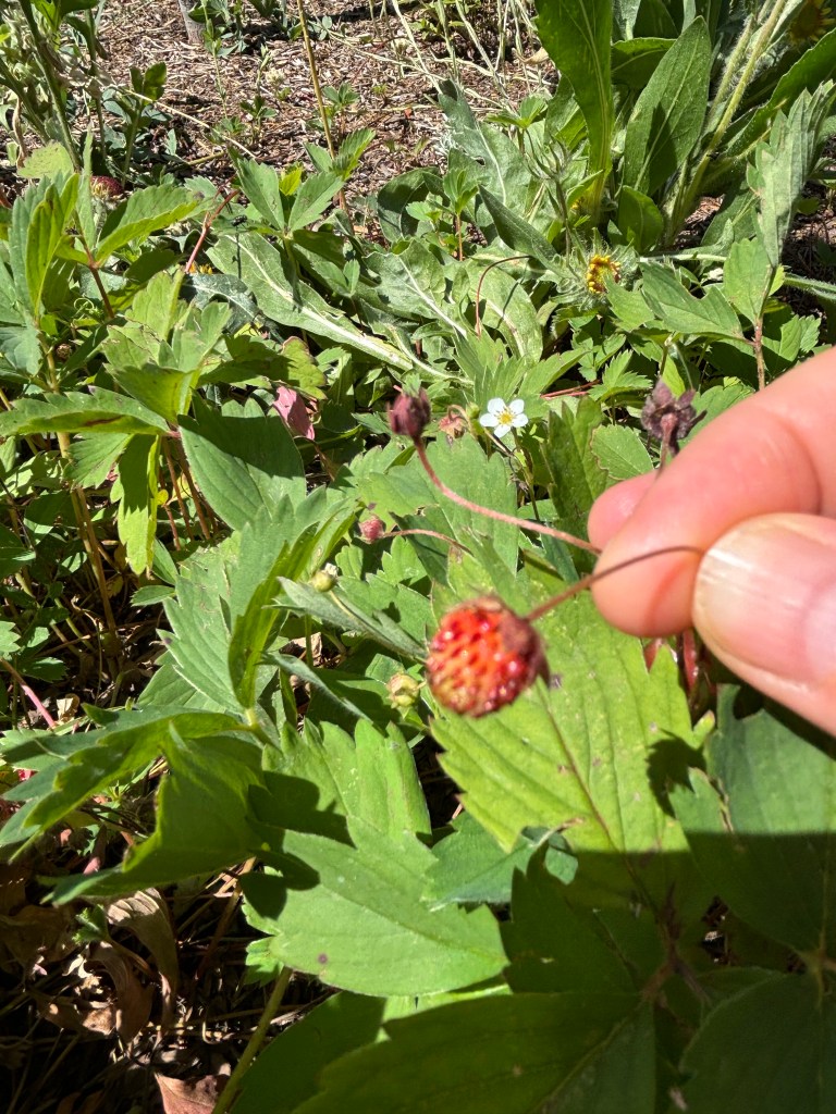 Wildflowers: Giant Hyssop, Harebells, Rosy Pussytoes, Fireweed, Purple Prairie Clover, Echinacea, Wild Strawberry, Blanketflower, Stiff Goldenrod, Common Sunflower, Wild Blue Flax, Bee Balm, Yellow Coneflower, Buffalobean (but i think they were out of stock so don’t think this is in the garden).